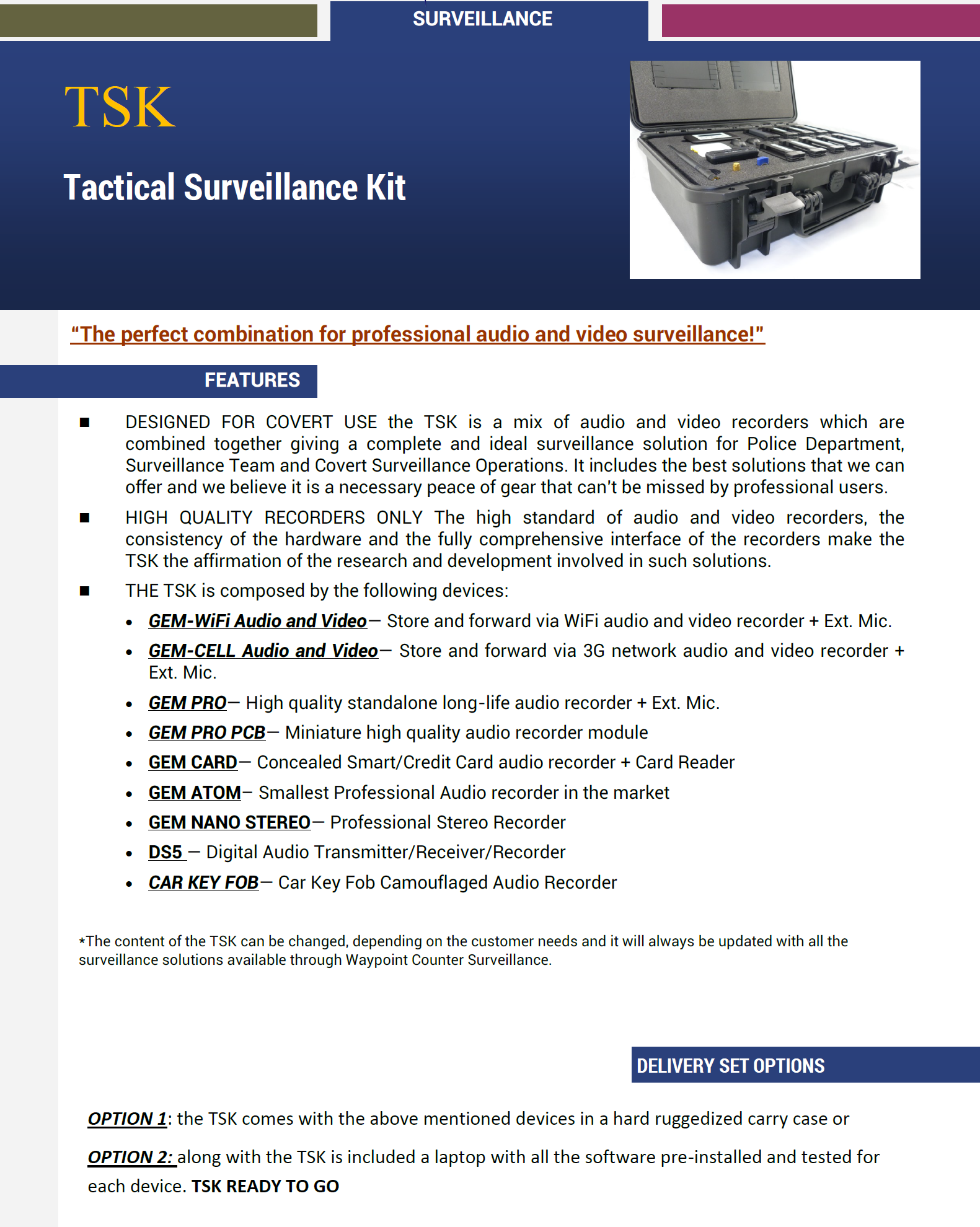 TSK Tactical Surveillance Kit (GEM Series/DS5 Custom Configured)